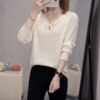 設計感V領針織上衣女秋冬新款 寬松顯瘦蝴蝶結毛衣 女裝 加肥加大碼