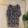 洋氣寬松一字肩兩穿印花短袖 胖mm大碼 t恤女 時尚 大衫 200斤夏季 薄款