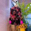 上衣胖妹妹秋冬款 大碼 女裝 立領盤扣復古風花朵絲絨長袖 顯瘦打底衫