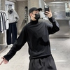 T恤男ins韓版 純色字母刺繡寬松青年保暖內搭t 半高領長袖 潮牌冬季