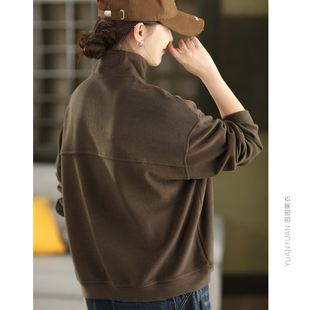 厚上衣內(nèi)搭絨衫 半高領(lǐng)加絨衛(wèi)衣女套頭無帽寬松長袖 2025年秋冬新款