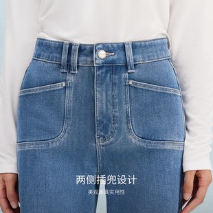 牛仔褲 ONLY2025冬季 女 喇叭褲 線前移長褲 新款 重工水洗顯高開衩褲